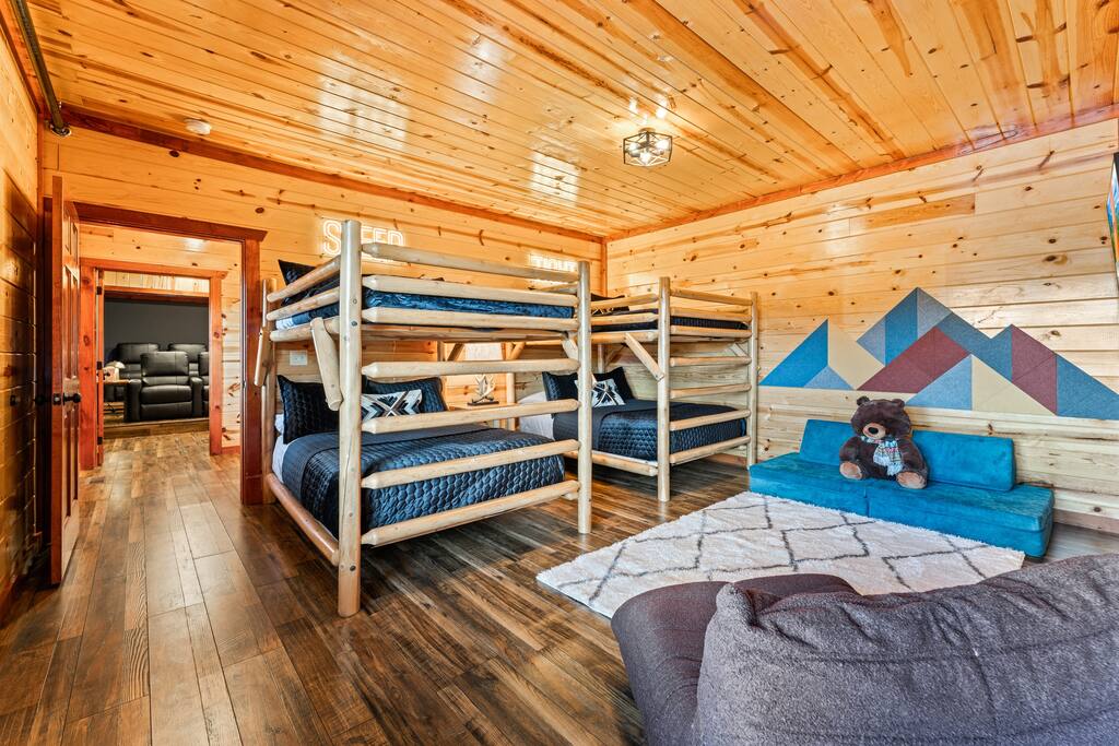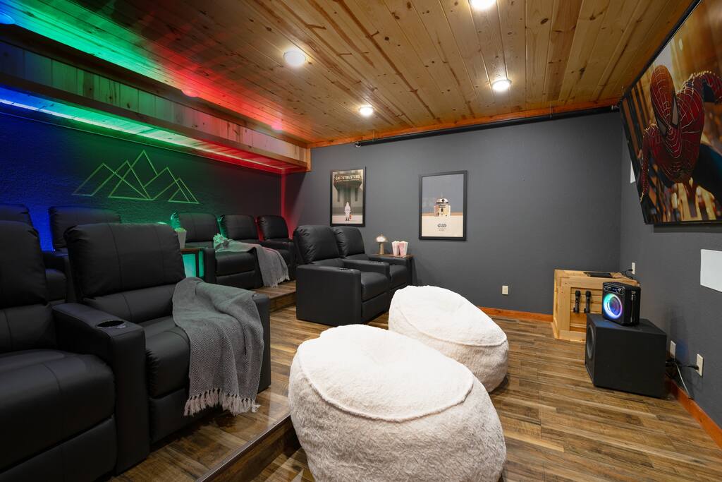 Welcome to this New Gorgeous Luxury 6 BR Cabin with all amenities and fun you can ever think of, close to Pigeon Forge Strip. Just 20 mins drive from famous Dollywood. Located on Wears Valley Rd of Sevierville. It is Easy Drive No Steep Roads. A Perfect for Family of any age and large groups of 26 people to enjoy their Holiday with unlimited relaxation. Loaded with stuff what everything you may need for a getaway trip and lot of games for kids. This is The Unique of its kind vacation getaway you would never imagine of . We have the popular Breakfast Bar, Coffee Bar for you with Expresso Machine. We have the luxury Theater Room with electric recliners and 5.1 Surround Home Theater System. We as well have Karaoke system for you guys to enjoy your time. For the babies we have got pack n play as well. We got the best of the best Mountain Views from each of our 3 back decks. We take big groups of 40 people to host 24 people in this Property and 16-18 people in another Property just 8 minutes drive from this. Separate booking needed for the other property. If you are interested, please send inquiry request. ✴️✴️ UNIQUE FEATURES ✴️✴️ ☀ 6 large ensuite Bedrooms (includes 4 kings, 2 sets of Bunk Beds/ 4 Beds, 4 Queen Sleeper Sofa) Sleep 26 ☀ Indoor Heated Swimming Pool with Bluetooth Speakers ☀ 6 FULL Bathrooms & 2 Half Bathrooms ☀ Open floor kitchen, dining area + living room ☀ Fully-equipped kitchen with loaded dishes, Kitchenette ☀ Modern Theater Room with Electric Recliners and 5.1 Surround Home Theater System. ☀ Main Level Deck with Hot Tub and Fire Pit fully private ☀ Breakfast Bar and Coffee Bar with Cuisinart Coffee Machine and Expresso. Pods Supplied ☀ Exotic Mountain Views from each deck with High Chairs, Rocking Chairs, Swing and Nest Chair ☀ Popcorn Machine for having PopCorn while watching your favorite movie in Theater Room ☀ Karaoke System each in main level and second level ☀ High-speed wifi (up to 1 TB) ☀ Game room with Air Hockey, FoosBall, 2 multi-game arcade , Dart Board and many board games ☀ Air conditioning + central heating ☀ Free washer + dryer inside the Unit ☀ Wine Bar with Mini Refrigerator and all accessories to make your own favorite drink ☀ Security camera for the front porch ☀ 45 minutes drive from TYS Airport, 3 hours Drive from Charlotte NC Airport and 3 hours drive Nashville Airport ✴️✴️ BEDROOMS ✴️✴️ The Property has 6 Full Suites. 1 Bedroom has 4 Bunk Beds with Caterpillar Chair and their Game area for kids to enjoy. Rest all 5 Bedrooms are King Bed with its own attached bathrooms. 3 of the bedrooms have luxury Sleeper Sofa Bed of Queen Size. Each bedroom has their own Smart TV with all the great apps you can think of plus cable channels from Comcast. You have lot of blankets and pillows extra to use as you need. ✴️✴️ BATHROOMS ✴️✴️ Each of the Six bedrooms has its own private ensuite bathroom. So no worries of sharing. All of the bathrooms are spacious and decorated and stocked with fresh towels, hair dryers, and essential toiletries for your convenience. There are 2 half bathrooms one is at Main Level while entering the Pool room and other one is at Game Room. ✴️✴️KITCHEN✴️✴️ The lovely kitchen features brand new, stainless steel appliances and is fully stocked with all the cookware, utensils, and dishes you need to whip up and serve some amazing gourmet meals. It has got Granite CounterTop. The dishwasher can even clean the electric BBQ Grill Tray. It is an open space overlooking the Living Area and the TV. The dining table is a Modern Luxury Table with Head Chair, Chairs and Bench. We have 2 Dining Table sitting 16 people for a grand family lunch or dinner. The crystal lights hanging on the Dining Table just gives that warm and welcoming feel to it. We have got Special Breakfast & Coffee Bar which is needed for getting some Caffeine to do all the mountain activities or exploring great smoky mountain. We have the famous Expresso Machine as well. We got utensils for Kids, Adults a prefect kitchen for a family. The Kitchen is equipped with Instant pot for your delicious recipe to enjoy. You have Toaster, Waffle Maker, Plates and Glasses for kids. You have Baking Tray for trying out your bakery you love. ✴️✴️ ENTERTAINMENT✴️✴️ This property comes with a great Theater Room with Modern 5.1 Surround Home Theater System and 86 inch smart LG QNED Series Brand New Model. We have electric recliner very comfy and relaxed with side tables for your drinks or popcorn. We have Roku installed on the TV . You have just one remote to manage the TV and the home theater system both. The popcorn machine is right at the entrance where you can grab a Popcorn to have the movie time as if you were in Century or AMC Theaters. We have few Bean Chairs on floor for people to go cozy and watch the movie they like to. On top of that we have kept a Karaoke System if you want to have a karaoke time with your family or friends in second level. ✴️✴️GAME ROOM ✴️✴️ The second floor has a Game Room with Air Hockey, Arcades, Foosball , Dart Board, Baord Games for kids/ adults. We have the Pub Table and Chair to have a drink as you play a game. We have a 75 inch smart TV to enjoy while playing your Arcade or Air Hockey. The Wine Bar and The Mini Refrigerator is on the same hallway so you can grab a nice drink while playing the game. ✴️✴️PRIVATE HOT TUB✴️✴️ The deck is beautiful overlooking the forest and enjoy the private hot tub for 5 people with your own privacy. It has a nice sitting area for 10+ people to spend quality time while You do bbq on the grill. You have the Smart TV to enjoy your favorite music or any sports while being in the Hot Tub. We also have the Fire-pit as well so you can enjoy the fire pit while spending a great family time. ✴️✴️SURROUNDING AMENITIES✴️✴️ 10 Minutes to Famous Pigeon Forge Strip I10 minutes to Isla